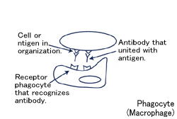 The macrophage (phagocyte) etc. attack this antibody and the symptom appears when antibodies such as IgE and IgM unite with the antigen in the organization on the cell mebrane. |